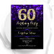 60e anniversaire invitation de fête. Design élégant violet avec de l'or de parties scintillant imitation. Dispose de diamants élégants, lumières de livres et police de script. Hommes ou femmes anniversaire invitation. Idéal pour une fête d'anniversaire pour adultes. Personnalisez avec vos propres détails. Message-moi si vous avez besoin d'une personnalisation plus poussée. Invitations Zazzle imprimées ou téléchargement instantané modèle imprimable numérique.