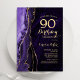 Admission de 90e anniversaire avec agate violet et or. Design élégant et moderne avec aquarelle agate marbre arrière - plan, fausse parties scintillant or et typographie script de police. Carte invitation branchée parfaite pour une célébration anniversaire féminine élégante. Invitations Zazzle imprimées ou téléchargement instantané modèle imprimable numérique.