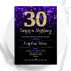 Surprise 30e anniversaire invitation de fête. Design élégant violet avec de l'or de parties scintillant imitation. Dispose de diamants élégants, lumières de livres et police de script. Hommes ou femmes anniversaire invitation. Idéal pour une fête d'anniversaire pour adultes. Personnalisez avec vos propres détails. Message-moi si vous avez besoin d'une personnalisation plus poussée. Invitations Zazzle imprimées ou téléchargement instantané modèle imprimable numérique.