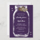 Invitation Purple Rustic Burlap Hearts Mason Jar Mariage
