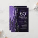 Purple et argent agate 60e anniversaire invitation de fête. Design élégant et moderne avec aquarelle agate marbre arrière - plan, faux parties scintillant argent et typographie script. Carte invitation branchée parfaite pour une célébration anniversaire féminine élégante. Invitations Zazzle imprimées ou téléchargement instantané modèle imprimable numérique.