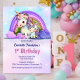 Cette invitation de 1er anniversaire présente deux adorables licornes violettes devant un arc-en-ciel rose et violet vibrant. Ce design charmant est spécialement conçu pour le 1er anniversaire d’une petite fille. Le texte personnalisable vous permet de le personnaliser avec tous les détails nécessaires, tels que le nom de l’enfant, la date, l’heure et l’emplacement de la fête d’anniversaire, ainsi que la date de réponse du RSVP. C'est parfait pour une maman qui aime une touche de fantaisie et veut donner à sa fille une ambiance magique et amusante.