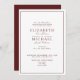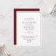 Un faire-part de mariage bordeaux classique et élégant, avec des scripts de calligraphie. Parfait pour la mariée moderne ayant une liaison formelle. Économisez le coût sur le joint stationnaire avec notre QR Code inclus au verso de l'invitation pour RSVP et détails Mariage. Voir la collection complète ici : https://www.zazzle.com/collections/elegant_burgundy_classic_script_wedding-119551906868087326 Contacter le concepteur pour les produits correspondants. Merci tellement pour soutenir notre petite entreprise, nous l'apprécions vraiment! Nous sommes si heureux que vous aimiez ce design autant que nous, et aimeriez que vous soyez invitation de faire partie de notre nouveau groupe Facebook privé Mariage Conseils de planification pour les épouses occupées. Rejoignez pour recevoir les dernières nouveautés sur les ventes, les nouvelles versions et plus encore! https://www.facebook.com/groups/622298402544171 Copyright Anastasia Surridge pour Invitations élégants, tous droits réservés.