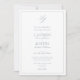 Un classique, élégant faire-part de mariage monogramme bleu et blanc poussiéreux, avec calligraphie script. Parfait pour la mariée moderne ayant une liaison formelle. Économisez le coût sur le boîtier stationnaire avec notre QR Code inclus au verso de l'invitation pour RSVP et détails Mariage. Contacter le concepteur pour les produits correspondants. Copyright Anastasia Surridge pour Invitations élégants, tous droits réservés.