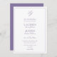 Un classique, élégant lavande et un faire-part de mariage monogramme blanc, avec calligraphie script. Parfait pour la mariée moderne ayant une liaison formelle. Économisez le coût sur le boîtier stationnaire avec notre QR Code inclus au verso de l'invitation pour RSVP et détails Mariage. Contacter le concepteur pour les produits correspondants. Copyright Anastasia Surridge pour Invitations élégants, tous droits réservés.
