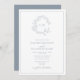 Invitation QR Code Dusty Blue Leafy Crest Monogram Mariage
