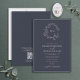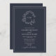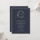 Invitation QR Code Marine Blue Leafy Crest Monogram Mariage