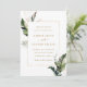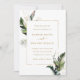 Cette faire-part de mariage tout-en-un présente un feuillage tropical vert aquarelle, une feuille de palmier, une feuille de bananier aux faux feuilles d'or, ainsi que les détails et un lien du site Web de code QR sur le dos. Il est parfait pour une plage, l'été, Hawaii ou un mariage de destination. >>> Découvrez l'ensemble de la collection >>> https://www.zazzle.com/collections/tropical_foliage_gold_collection-119316977990783186