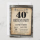 Quarantième invitation rustique d'anniversaire avec l'arrière - plan en bois rustique. Rétro pays vintage. Anniversaire adulte. Anniversaire masculin d'hommes ou de femmes. Enfants garçon ou Madame Teen Teenage Bday Invite de fille. 13ème 15ème 16ème 18ème 20ème 21ème 30ème quarantième cinquantième soixantième soixante-dixième quatre-vingtième quatre-vingt-dixième 100th. Tout âge. Pour davantage de personnalisation, cliquez sur svp la "personnaliser il" bouton et utilisez notre outil de conception pour modifier ce modèle.