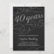 Cette jolie quarantième invitation de fête d'anniversaire comporte des flourishes élégants, la calligraphie de manuscrit qui lit "40 ans," l'aluminium argenté de faux, et un arrière - plan noir chic. Customisez facilement l'invitation avec vos détails de partie.