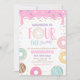 Invitation à la fête d'anniversaire de quatre beignes toujours sucrés. Tous les modèles sont © PIXEL PERFECTION PARTY LTD