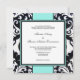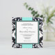 Arrière - plan noir et blanc Damas avec invitation à un mariage avec accentuation bleue