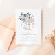 Célébrez la future mariée avec cette invitation à la douche nuptiale de Quelque chose de bleu avant de faire. Doté de fleurs d'aquarelle bleu et d'ivoire avec une conception en verre de champagne, il est parfait pour des douches de printemps et d'été, des fêtes de jardin ou un brunch chic. Personnalisez avec vos détails d'événement pour une touche élégante.