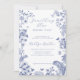 Célébrez l'amour et la tradition avec notre exquise Chinoiserie Quelque chose de bleu avant de faire des invitations de douche nuptiale! Profitez du charme d'un thème classique tout en ajoutant une touche contemporaine à votre journée spéciale. Nos invitations présentent des motifs complexes de Chinoiserie dans des tons bleus sereins, évoquant un sentiment de romantisme et de sophistication. Avec notre modèle personnalisable, personnaliser vos invitations est une brise! Ajoutez simplement les détails de votre événement pour créer un chef-d'oeuvre personnalisé qui reflète votre style et votre vision uniques. Du nom de la mariée à la date, l'heure et l'emplacement, chaque détail peut être ajusté à la perfection. Explorez notre collection pour découvrir un trésor d'objets de coordination qui vous permettra d'améliorer votre expérience de la douche nuptiale. Des cartes de boîtier assorties aux décorations charmantes, nous avons tout ce dont vous avez besoin pour créer une fête cohésive et inoubliable.