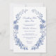 Préparez la scène pour une fête intemporelle avec cette Invitation à la douche nuptiale Quelque chose de bleu avant de faire, avec un cadre ovale de style victorien élégant fait avec de délicats fleurs sauvages d'aquarelle bleu poussiéreux. Mélange parfait de charme vintage et de beauté botanique, ce design est mis en valeur par une calligraphie gracieuse pour une touche sophistiquée. Si vous avez besoin d'aide pour personnaliser votre invitation, faites-le-moi savoir : j'aimerais vous aider !