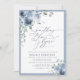 Cette invitation est un merveilleux symbole d'amour et de dévotion. Une palette de couleurs bleu clair doux crée un décor serein et apaisant, tandis que des motifs floraux délicats ajoutent féminité et élégance. Les détails complexes de l'ornement floral captivent et attirent l'oeil, attirant le spectateur dans l'invitation. La typographie de cette invitation est tout aussi étonnante, qui respire l'élégance et la grâce. Les mots "Quelque chose de bleu avant moi" qui ajoute une touche de quiétude et de romantisme, en indiquant clairement qu'il s'agit d'une célébration de l'amour. Des éléments correspondants sont disponibles. Voir la collection complète ici : https://www.zazzle.com/collections/elegant_dusty_blue_floral_bouquet-119743866163758178