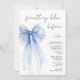 Elégante invitation à la douche nuptiale avec une aquarelle d'un grand arc de coquette bleu et "quelque chose de bleu avant moi" dans un script chic.