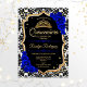 Invitation à la célébration de la Quinceanera en or noir bleu royal. Caractéristiques damask pattern, script font, royal bleu roses, tiara et confetti. Design bleu saphir classique avec parties scintillant d'or faux. Parfait pour une élégante célébration de glamour.