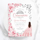 Invitation Quinceanera d'argent blanc rose