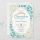 Invitation à la célébration de la Quinceanera en or Turquoise. Caractéristiques, police de script, papillons d'or, roses d'aquarelle et tiara. Parfait pour une élégante célébration de glamour de style princesse. Personnalisez avec vos propres détails. Invitations Zazzle imprimées ou téléchargement instantané modèle imprimable numérique.
