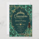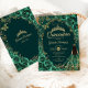 Émeraude vert et or Quinceanera invitation de célébration. En vedette brune fille en robe de robe de bal, police de script, papillons d'or, roses d'aquarelle et tiara. Parfait pour une élégante célébration de glamour de style princesse. Personnalisez avec vos propres détails. Invitations Zazzle imprimées ou téléchargement instantané modèle imprimable numérique.