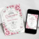 Invitation à la célébration de la Quinceanera rose, argent et blanc. Caractéristiques, police de script, papillons, roses d'aquarelle et tiara. Parfait pour une élégante célébration de glamour de style princesse. Personnalisez avec vos propres détails. Invitations Zazzle imprimées ou téléchargement instantané modèle numérique imprimable