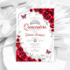 Invitation à la célébration de la Quinceanera rouge, argent et blanc. Caractéristiques, police de script, papillons, roses d'aquarelle et tiara. Parfait pour une élégante célébration de glamour de style princesse. Personnalisez avec vos propres détails. Invitations Zazzle imprimées ou téléchargement instantané modèle imprimable numérique.