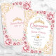Invitation à la célébration de la Quinceanera en or rose. Caractéristiques, police de script, papillons d'or, roses d'aquarelle et tiara. Parfait pour une élégante célébration de glamour de style princesse. Personnalisez avec vos propres détails. Invitations Zazzle imprimées ou téléchargement instantané modèle imprimable numérique.