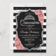 Invitation à la célébration de la Quinceanera en argent noir rose. Caractéristiques rayures, police de script, roses roses rose pâle, tiara et confetti. Design rose fuschsia élégant avec faux argent parties scintillant. Parfait pour une élégante célébration de glamour.