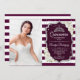 Quinceanera invitation à la fête avec votre photo. Il présente des rayures blanches bordeaux, des caractères de script, des roses, des tiaras et des confettis. Maroon élégant, Marsala design or vin avec faux argent parties scintillant. Parfait pour une célébration élégante.