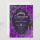 Invitation à la célébration de Quinceanera violet et argent. En vedette brune fille en robe de robe de bal, police de script, papillons, roses d'aquarelle et tiara. Parfait pour une élégante célébration de glamour de style princesse. Personnalisez avec vos propres détails. Invitations Zazzle imprimées ou téléchargement instantané modèle imprimable numérique.