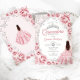Invitation à la célébration de Quinceanera en argent rose. En vedette brune fille en robe de robe de bal, police de script, papillons argentés, roses d'aquarelle et tiara. Parfait pour une élégante célébration de glamour de style princesse. Personnalisez avec vos propres détails. Invitations Zazzle imprimées ou téléchargement instantané modèle imprimable numérique.