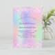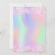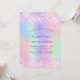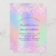 Une Quinceañera féminine et féminine, 15ème anniversaire invitation à la fête. Devant : Un arc-en-ciel, arrière - plan de couleur holographique en violet, rose, vert menthe, or rose. Décoré de faux parties scintillant rose vif, brille. Personnalisez et ajoutez un nom et des détails du parti. Le nom est écrit avec un script de style écrit à la main, des lettres de couleur violette.