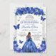 Quinceañera Roses Bleues Fleurs Princesse Papillons Invitation