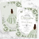Invitation Quinceanera Sage Vert Robe Argent Floral
