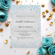 For an elegant Quinceañera, 15th birthday. A faux silver looking background. Decorated with blue faux glitter dust. Personalize and add a name, age and party details. The name is written with a hand lettered style script