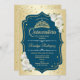 Invitation Quinceanera turquoise or élégant