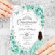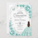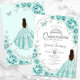 Invitation Quinceanera Turquoise Robe Argent Floral