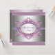 Invitation de fête de quinceañera élégante rose et lavande violette avec parchemin et filigrane pour un anniversaire de quinze ans.