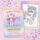 Invitations amis et famille à une magique fête de 4ème anniversaire avec cette adorable invitation à thème de la licorne ! Lumineux, coloré et plein de charme, il partage clairement tous les détails de la fête. De plus, le dos dispose d'une page de coloriage unicorne amusante pour exciter les petits invités.