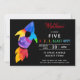 Invitation Rainbow Rocket Ship Exterspace Anniversaire