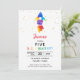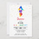 Invitation Rainbow Rocket Ship Exterspace Anniversaire