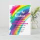 Jeter une fête amusante pour un ami ou un membre de la famille? Les thèmes arc-en-ciel sont très populaires pour les fêtes adultes et enfants. Cette invitation présente un design artistique arc-en-ciel avec des couleurs primaires vives. Nous avons écrit le bon message pour parler du moment, mais vous pouvez le customiser comme vous l'aimez. Recherchez d'autres variantes du thème dans la collection ci-dessous, ou contactez-nous pour concevoir quelque chose de spécial juste pour vous.