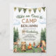 Préparez-vous à entreprendre un voyage mémorable pendant que vous fêtez l'anniversaire de votre petit camper ! Notre invitation "Randonnée pédestre" donne le ton parfait pour une célébration inoubliable sur le thème du bois. Cette charmante invitation présente un ensemble ravissant d'animaux de bois mignons, dont un cerf ludique, un ours amical, un écureuil curieux, un hibou sage, un raton laveur espiègle, un petit porc-épic doux et un adorable renard. Sur fond de pinèdes luxuriantes, de feu de camp rustique et de tente confortable, cette invitation saisit l'essence d'une aventure forestière fantasque. Que vous soyez l'hôte d'un campout de jardin ou d'une fête sur le thème des bois, cette invitation ravira vos invités et préparera le terrain pour une journée de célébration amusante. Faites de l'anniversaire de votre enfant un jour pour vous souvenir avec nos charmantes invitations d'anniversaire de camping "Randonnée pédestre". Commencez à personnaliser et commandez le vôtre dès aujourd'hui. L'aventure vous attend !