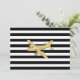 Invitation Rayures noires et blanches & avion doré