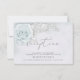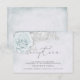 Réception de mariage | Assurez-vous que vos invités aient les informations sur votre réception à portée de main avec cet encart qui présente une rose bleu pâle avec des feuilles argentées et des étincelles sur un joli fond bleu vieilli antique. La calligraphie script est combinée avec une police contemporaine lui donnant un attrait moderne. Cela fait partie d'une collection de papeterie de mariage avec des accessoires de mariage assortis. Design créé pour le BarefootBride™ © par WhimsicalArtwork™