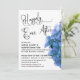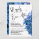 Voici un choix frais pour vos besoins de célébration après le mariage. Sur un fond blanc modifiable, j'ai placé un graphique de typographie qui lit "Happily Ever After", avec une police de caractères moderne et magnifique en noir. À droite du texte, j'ai placé le bord d'une hydrangea à l'aquarelle agrandie en bleu, en violet lilas et avec des nuances subtiles de vert. Une version agrandie de ce même élément botanique a été placée au dos et couvre toute la surface du verso. Utilisez les champs de modèle pour ajouter vos propres détails et cliquez pour personnaliser davantage si vous souhaitez apporter des modifications supplémentaires. Toutes les couches sont déverrouillées pour permettre tout le contrôle de positionnement et de dimensionnement que vous souhaitez.