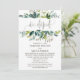 Cette carte de réception de fuite "nous avons fugué" est parfaite pour une fête rustique après une fugue. Le design présente un cadre boho de feuilles vertes et de botaniques de feuillage vert. Les cartes de réponse assorties sont vendues séparément.