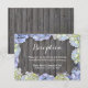 Cartes de réception de mariage en bois de grange avec cadre floral à l'hydrangea chic.
