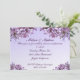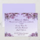 Les lilas sont le thème de cette invitation de réception de mariage. Le devant présente des grappes de lilas roses et mauves sur un fond violet. Le dos comporte plus de lilas. Tout le texte peut être personnalisé pour répondre à vos besoins.